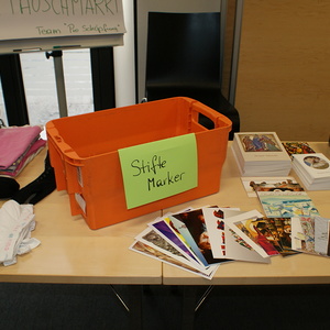 Egal ob Mappen, Kleber, Scheren, Locher, Stifte etc. - alles, was von diversen Abteilungen nicht mehr gebraucht wurde stand zur freien Entnahme im Parterresaal bereit und wartete auf einen neuen Besitzer. So wurde bereits verstaubten Dingen neuer Glanz verliehen.