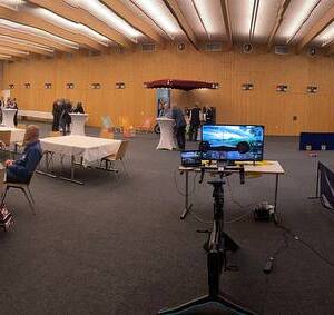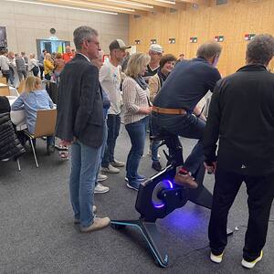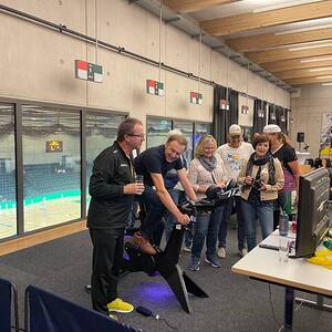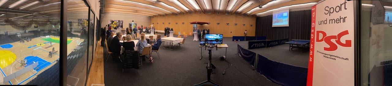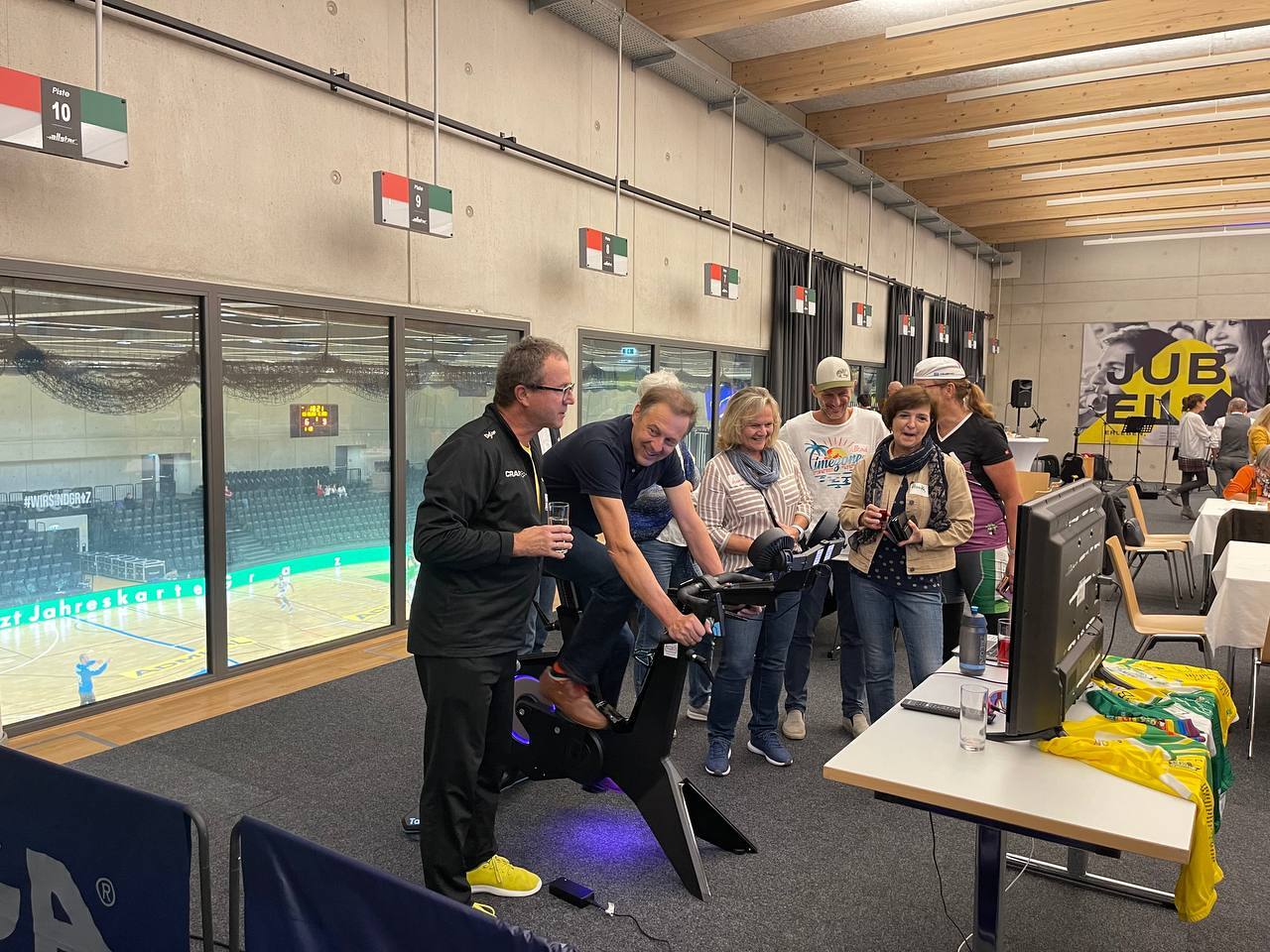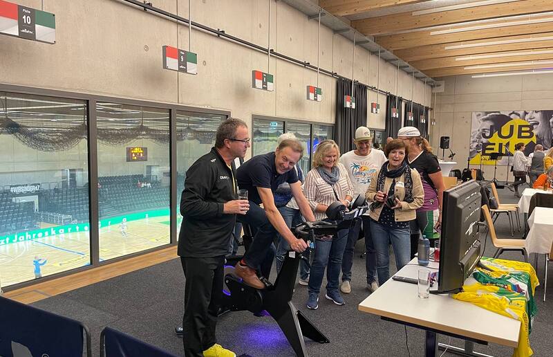 Nach den Ehrungen und einer köstlichen Verpflegung ging es mit einem bunten & sportlichen Rahmenprogramm weiter. Die Gäste lieferten sich spannende Duelle im Boccia, Spikeball und Tischtennis. So richtig ins Schwitzen kamen die Gäste spätestens am SmartBike von Ride4Hope, die im Zuge ihrer Tour auch bei uns Halt machten und unseren Gäste eine virtuelle Testfahrt entlang des Hybridcups ermöglichten. Für Erfrischung zwischendurch sorgte das CAFeBIKE der Denk Dich Neu Initiative, das in Sachen Optik definitiv die meiste Aufmerksamkeit auf sich zog. Wer jetzt noch nicht genug von Spiel & Sport hatte, war eingeladen, das Bundesliga Handballspiel der HSG Graz gegen die Vorarlberger ALPLA HC Hard einen Stock tiefer zu besuchen. Musikalisch begleitet wurde der Abend durch die - Bischöfliche Hauskapelle - die mit ihrer Darbietung eine großartige Atmosphäre geschaffen haben.