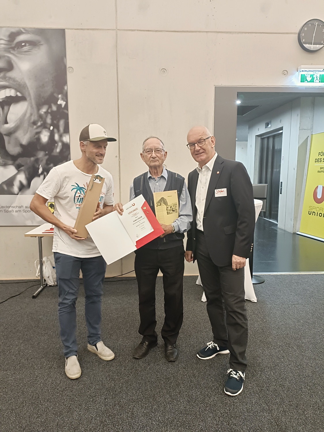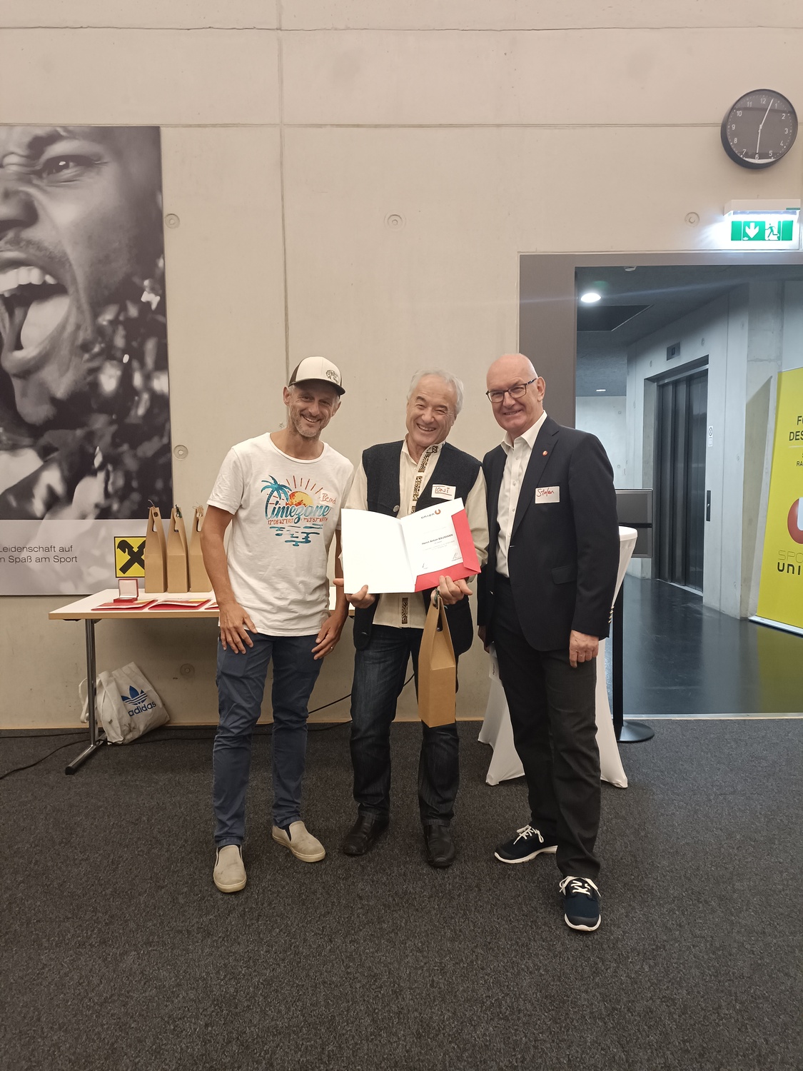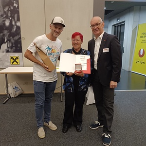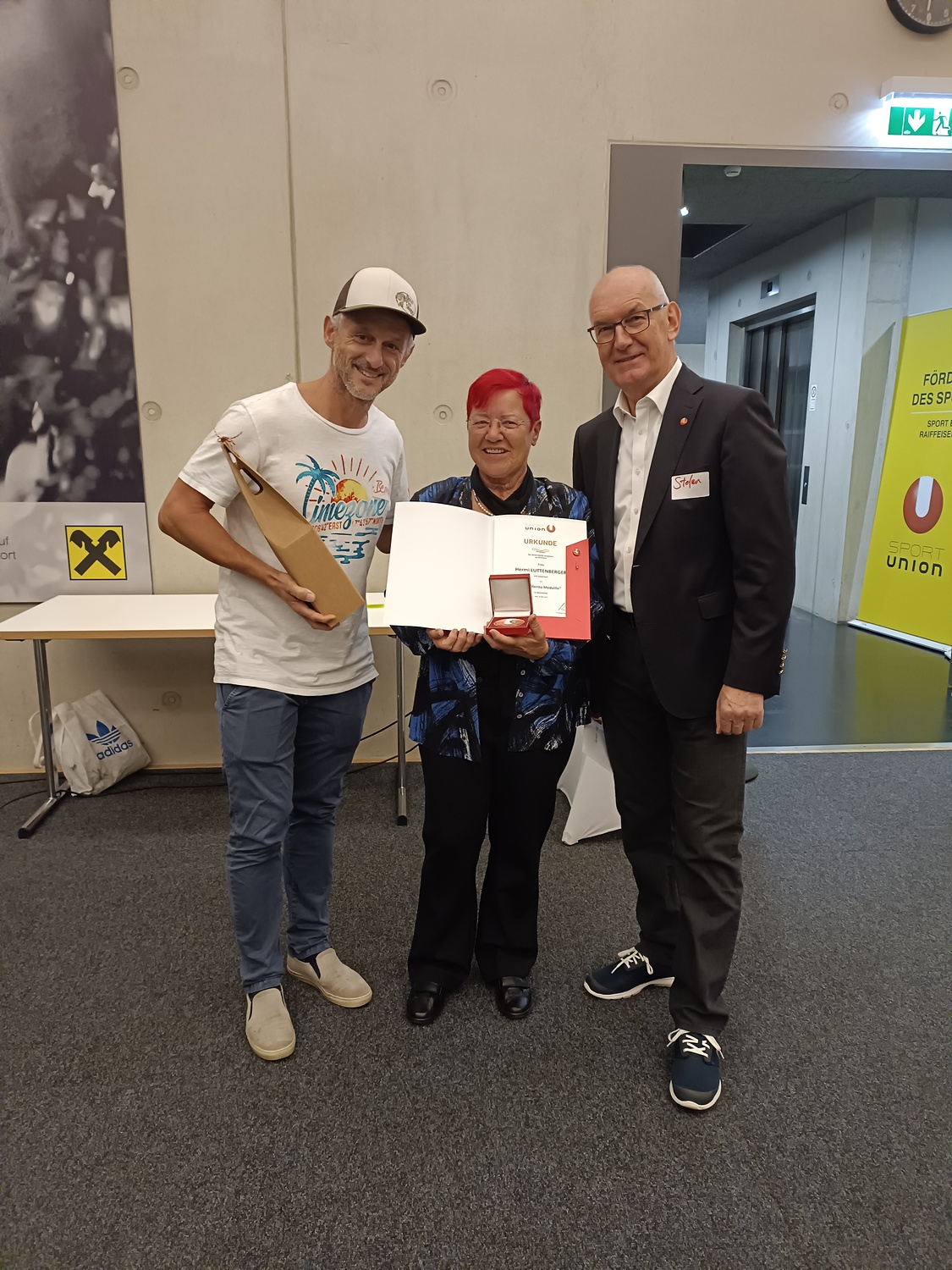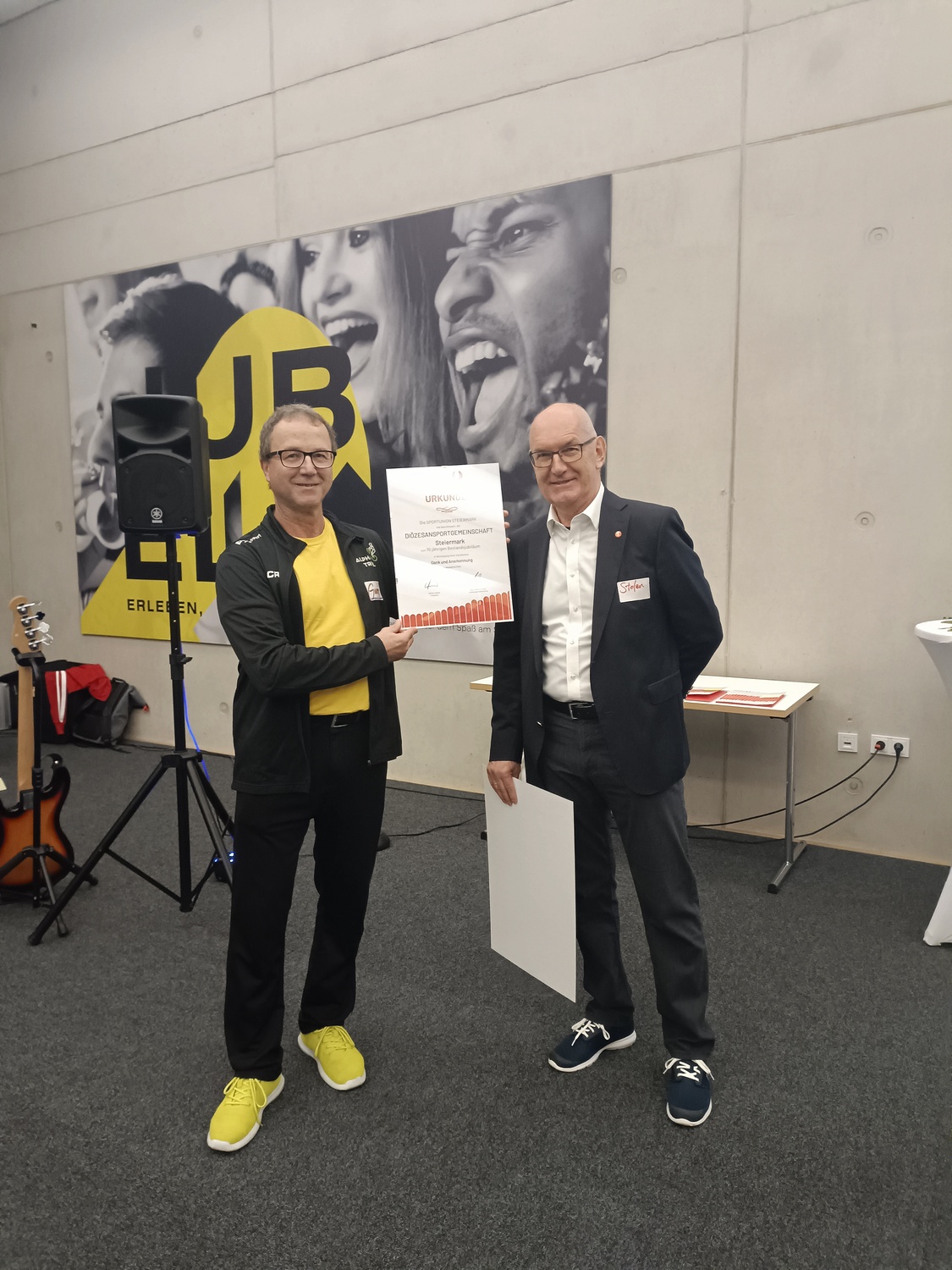 Dabei durfte die DSG auch eine Auszeichnung für ihr 70-jähriges Bestandsjubiläum entgegennehmen. Stefan Herker, Präsident der Sportunion Steiermark, überreichte DSG Obmann Georg Plank die Urkunde und einen Scheck in Wert von 700€. Wir bedanken uns recht herzlich! Auch wir nutzten diesen Anlass, um uns bei fünf ganz besonders engagierten Menschen für ihre jahrelangen Verdienste im Namen der DSG und der steirischen Sportlandschaft zu bedanken. Liebe Hermi, lieber Anton, Berndt, Gerhard und Volker - ein großes Dankeschön für euer Mitwirken in der DSG!
