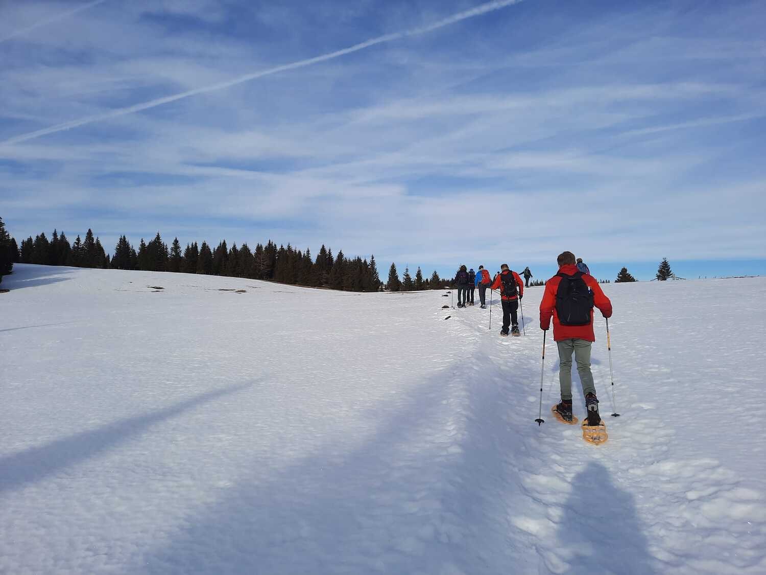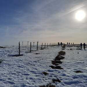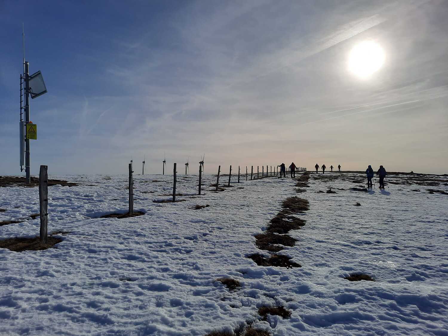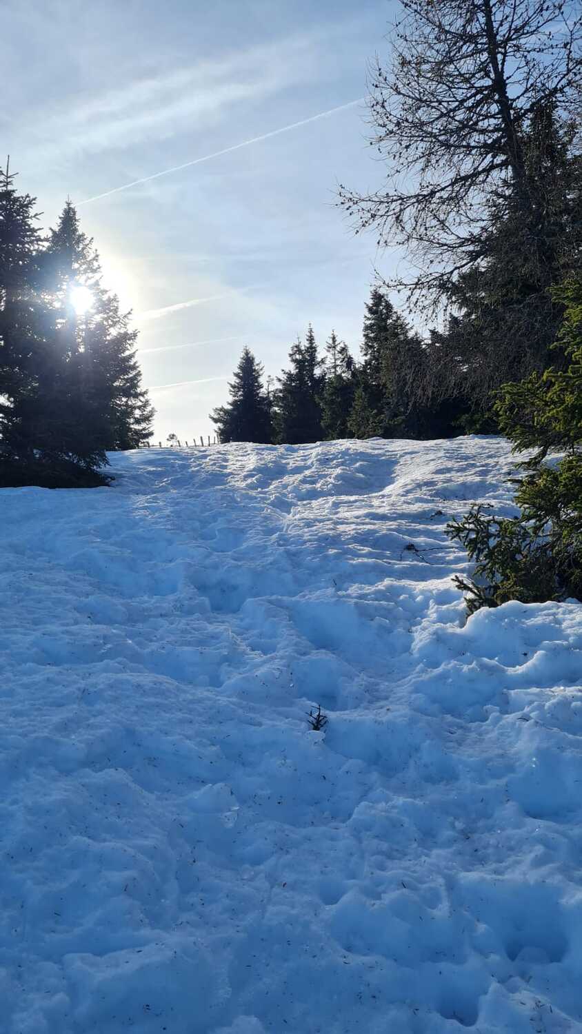 Wir trafen uns um 9 Uhr bei der Rehbockhütte auf 1.373 m und gingen Richtung Handalm/Weinebene, wegen Schneemangel zuerst noch ohne Schneeschuhe, vorbei am Hochmoor See Eben entlang der Grenze Steiermark - Kärnten.