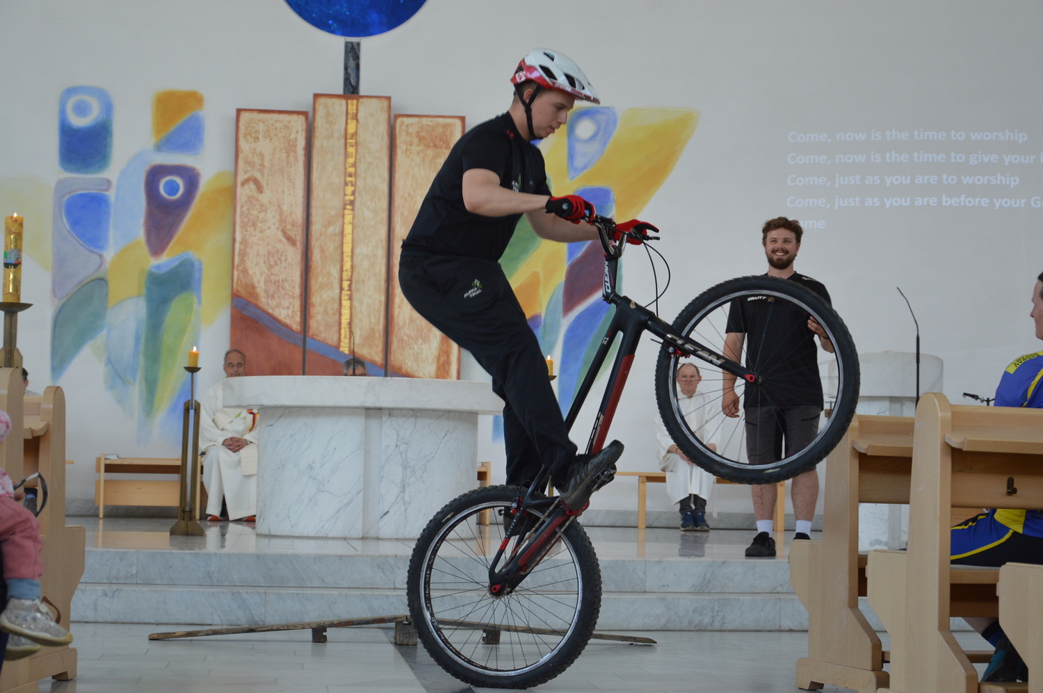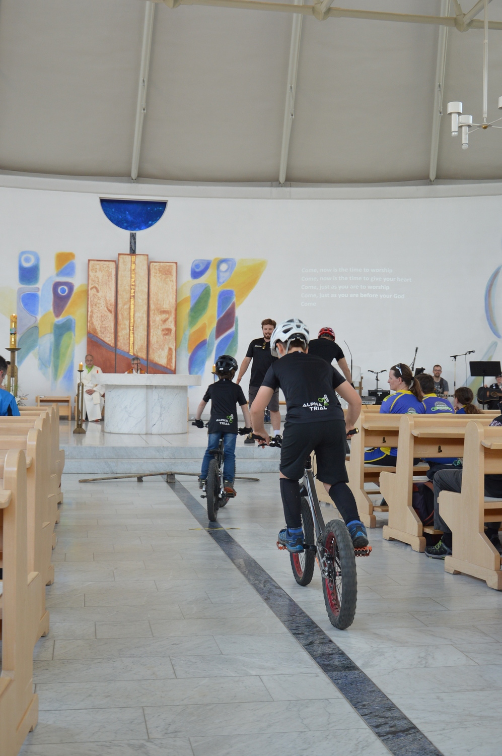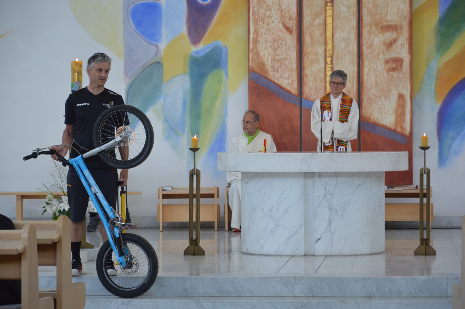 Raus aus der Komfortzone, rein in den Sportgottesdienst. Nach diesem Motto ging es dann zum feierlichen Abschluss in den wunderschönen Kirchenraum der Schutzengelpfarre. Denn dieser Gottesdienst ist anders - sportlich, inklusiv und interaktiv.