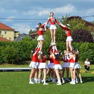 Der Höhepunkt für die kleinsten Gäste war die abschließende Cheerleading-Show der drei DSG Teams: Fire, Sparks und Flash. Dort zeigten schon die Kleinsten mit 5 Jahren akrobatische Einlagen vom Feinsten. Zuschauer:innen, Familie und Freunde waren begeistert!