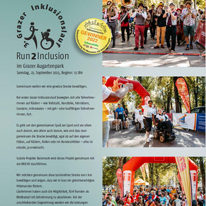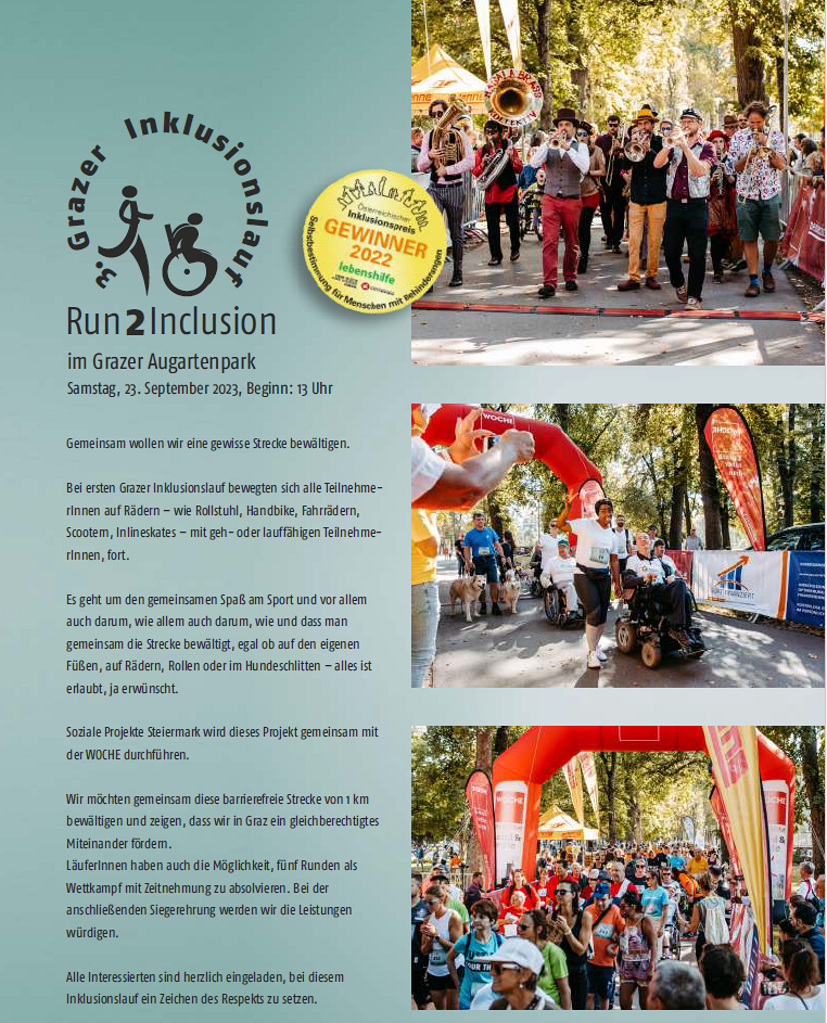 Noch ein Veranstaltungstipp: 3. Grazer Inklusionslauf am Sa. 23.9.2023 ab 13:00 Uhr im Augarten - auch DSG Mitglieder sind herzlich eingeladen!