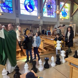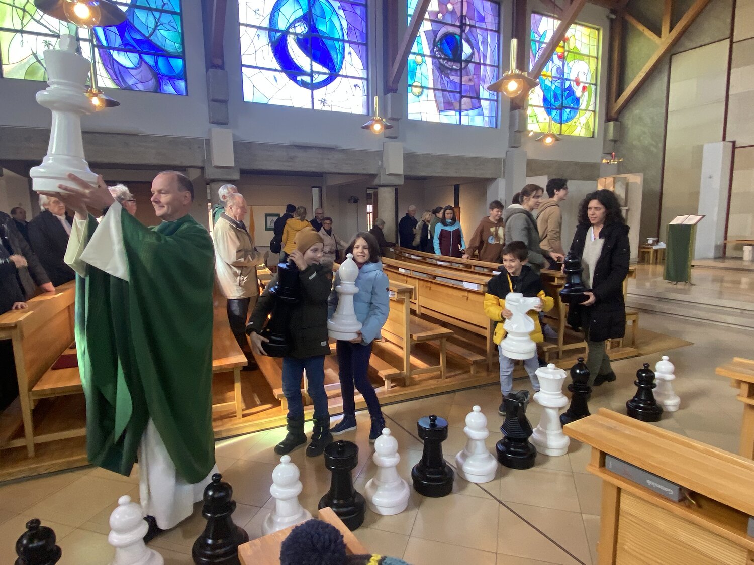 Auch im Bezug auf das Evangelium, in dem Jesus vor dem schnellen Be- und Verurteilen des jeweils Anderen warnt, spannte der Pfarrer einen Bogen zum Schachspiel: Auch hier gilt es, aufmerksam zu sein, genau hinzusehen, sich ein umfassendes Bild zu machen, warten und zuhören zu können. Beide sollen sich bereichern und voneinander lernen.