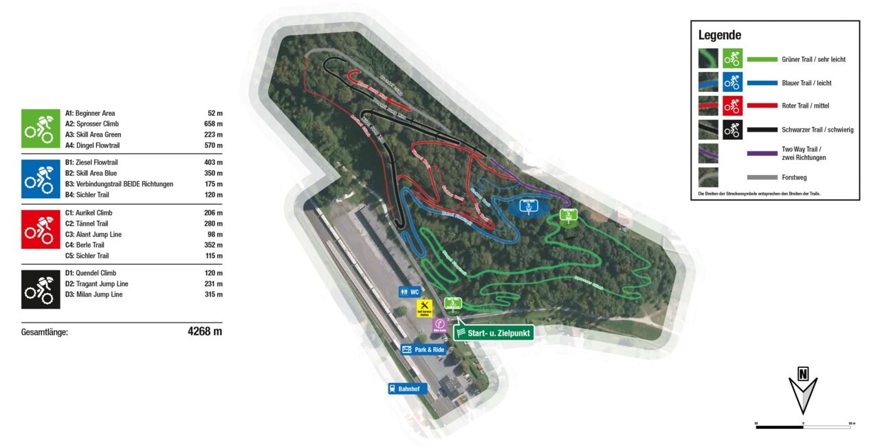 Große weite Steilkurven, kleine Roller, hier kann man den Flow richtig genießen. Skill Area Blue: (Blau) Sichler Trail: (Blau-Rot) Tännel Trail: (Blau-Rot) |