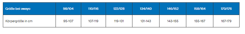 Kinder: 98-104, 110-116, 122-128, 134-140, 146-152, 158-164, 170-176 (Größentabelle)