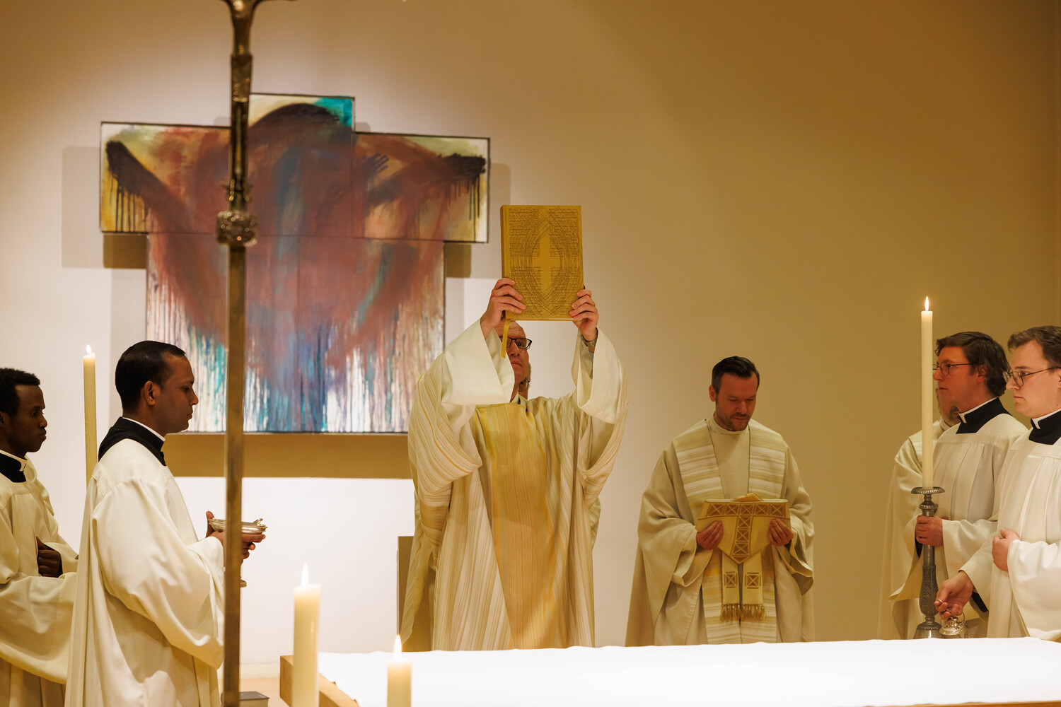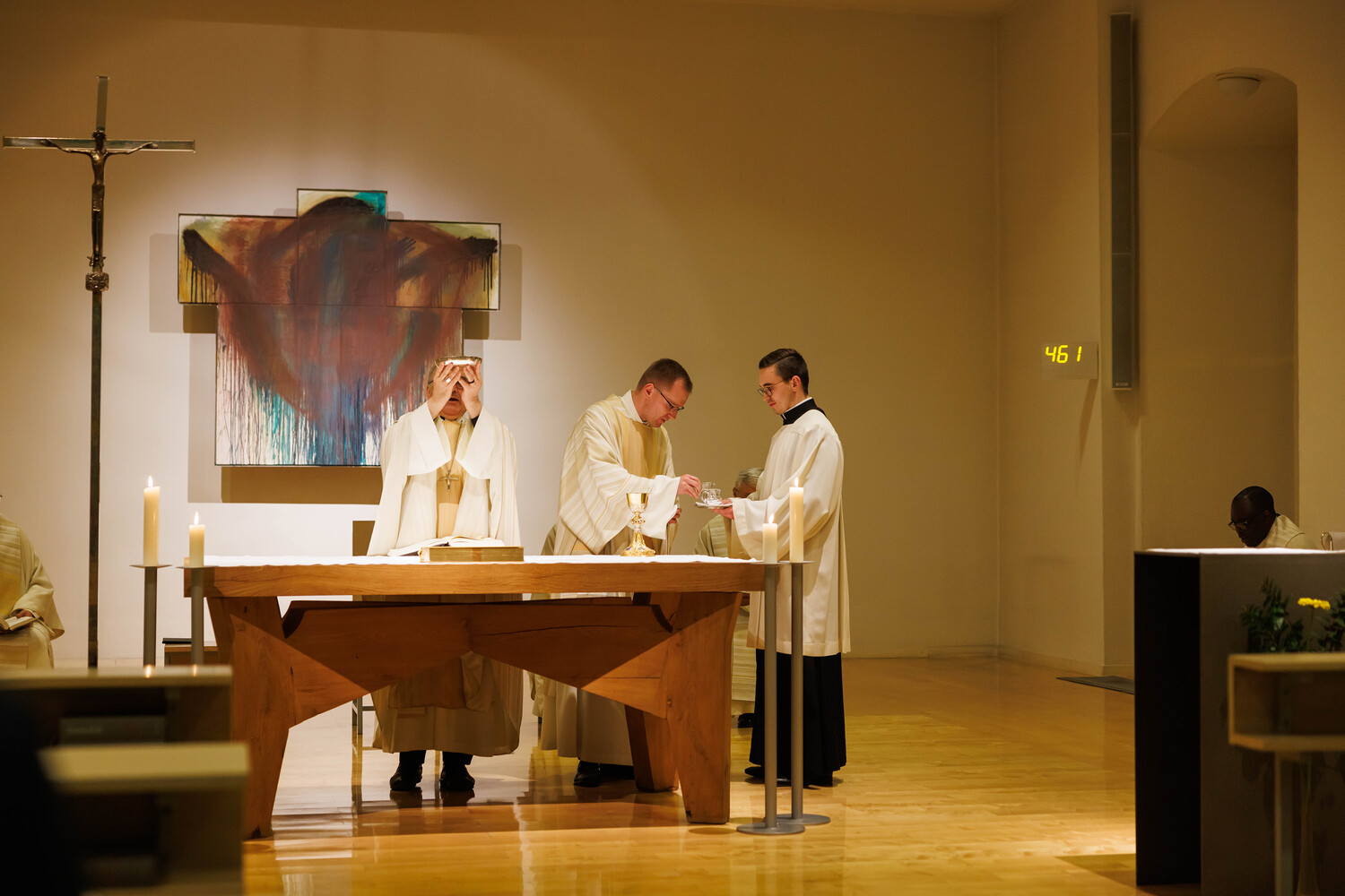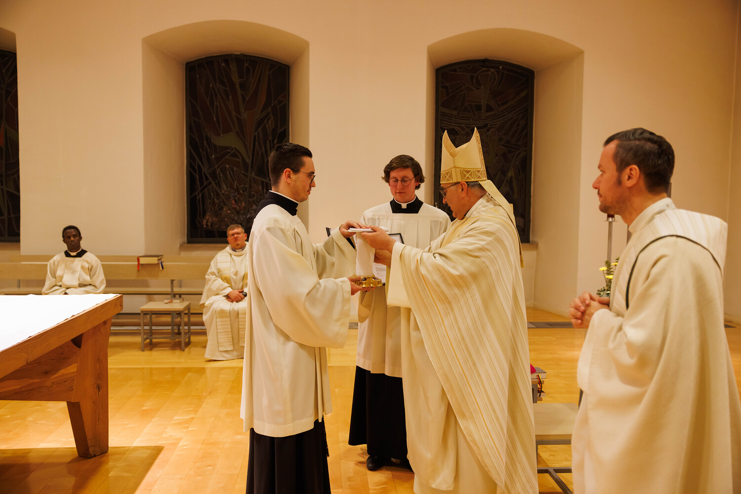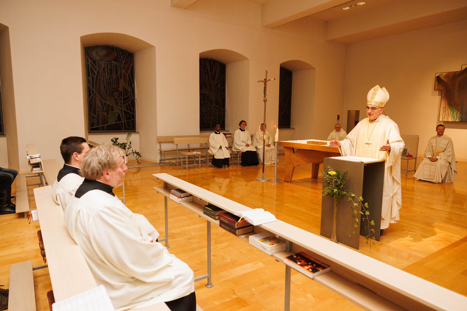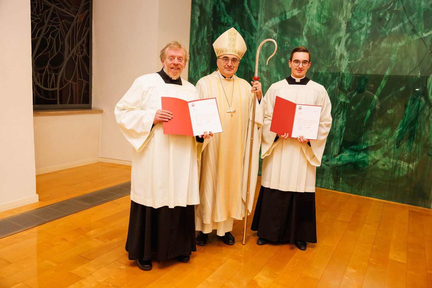 Auf dem Weg der Nachfolge lässt man sich aber immer mehr und mehr in das Lebensgeheimnis Jesu ein. Es sei nicht nur ein Nachahmen, sondern „ein sich selbst in die Fußstapfen Jesu begeben, in dem Seine Lebensart immer mehr zu der eigenen wird.“ Der Bischof wies darauf hin, dass der Maßstab sei, ganz für die Menschen, mit denen man unterwegs ist, zu leben. Sein Wunsch: „Wenn du, Thomas, heute zum Dienst als Akolyth beauftragt wirst, dann ist dies nicht bloß der offizielle Auftrag der Kirche, die Kommunion zu spenden oder liturgische Dienste auszuüben. Es geht um den innersten Kern christlicher Berufung, den zu vertiefen Du Dich auf den Weg gemacht hast. Lass möglichst viele daran teilhaben!“