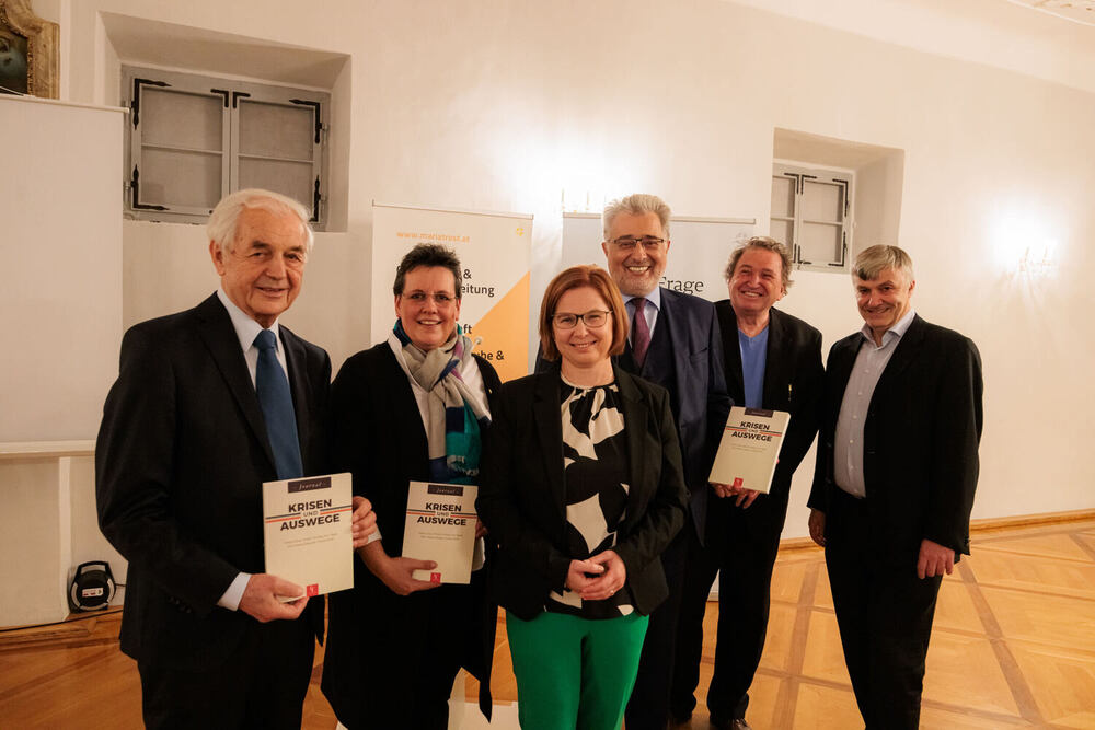 Andreas Gjecaj, ehrenamtlicher Präsident der Katholischen Aktion, präsentierte am 16. Oktober 2023, im Rahmen einer Kooperationsveranstaltung des Bildungsforums Mariatrost und der Katholischen Aktion Steiermark (gefördert aus Mitteln der ÖGPB), die von ihm persönlich, Josef Riegler, Manfred Prisching u.a. heuer herausgegebene umfassende Essaysammlung ‚Krisen und Auswege‘, die auf der spürbaren Zuversicht basiert, dass es Mittel und Wege gibt, auf die aktuelle Polykrise zu reagieren. „Die Zeit drängt und wir brauchen so rasch wie möglich akzeptable Lösungen, die für alle Menschen Verbesserungen bringen“, betonte Gjecaj als Motivation der Autoren, verschiedenste miteinander verzahnte Auswege zu bündeln mit dem Ziel, „eine Bewegung der Verbundenheit“ zu erreichen. Ausgehend von einem „Soziallehre-Fahrplan“ sei es wesentlich, durch Dialog- und Kompromissfähigkeit sowie Respekt dem/der Anderen gegenüber einen konstruktiven Beitrag zum Gesprächsklima unserer Zeit zu leisten. Darüber hinaus müssten sich Wege aus der Krise deutlich entfernen von unserer bisherigen Art zu leben und zu wirtschaften.