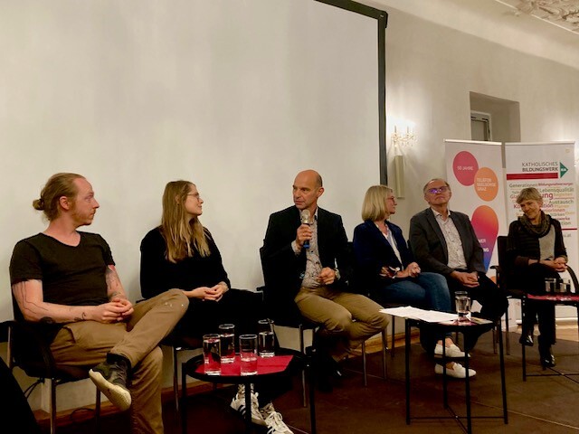Im anschließenden gehaltvollen Podiumsgespräch mit Kathrin Karloff, Leiterin des Bildungsforums Mariatrost, und den zahlreichen hochinteressierten Gästen erläuterten die beiden Referenten gemeinsam mit Wirtschaftswissenschaftler Karl Steininger, Direktor des Wegener Centers an der Universität Graz, welche globalen Mechanismen es jetzt konkret braucht, um diesen Bewusstseinswandel zu erreichen. Nicht zuletzt sei – und darin waren sich alle drei Referenten einig – der solidarische Einsatz jedes/r Einzelnen, die „private Mission im humanistischen Sinne“, wesentlich.
