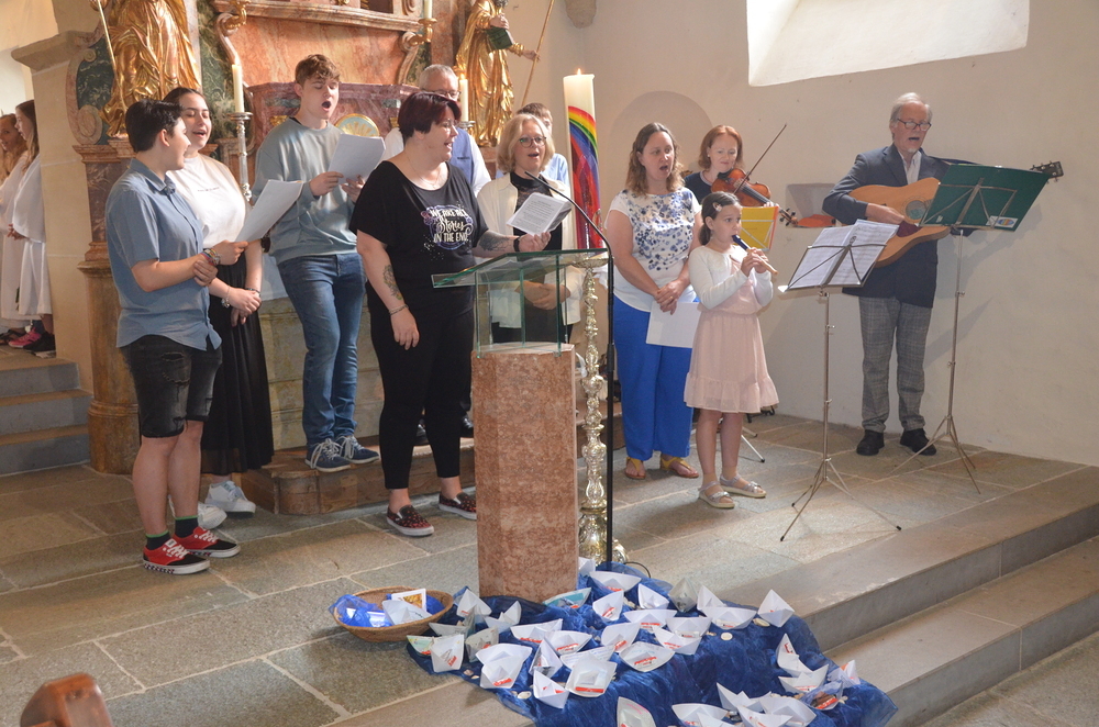 Passend zum nahen Ferienbeginn gestaltete der Familienkreis der Pfarre eine Familienmesse mit Reisesegen. Dabei wurden noch einmal die Erstkommunionlieder unter der Leitung von Katharina Wesener gespielt und gesungen.