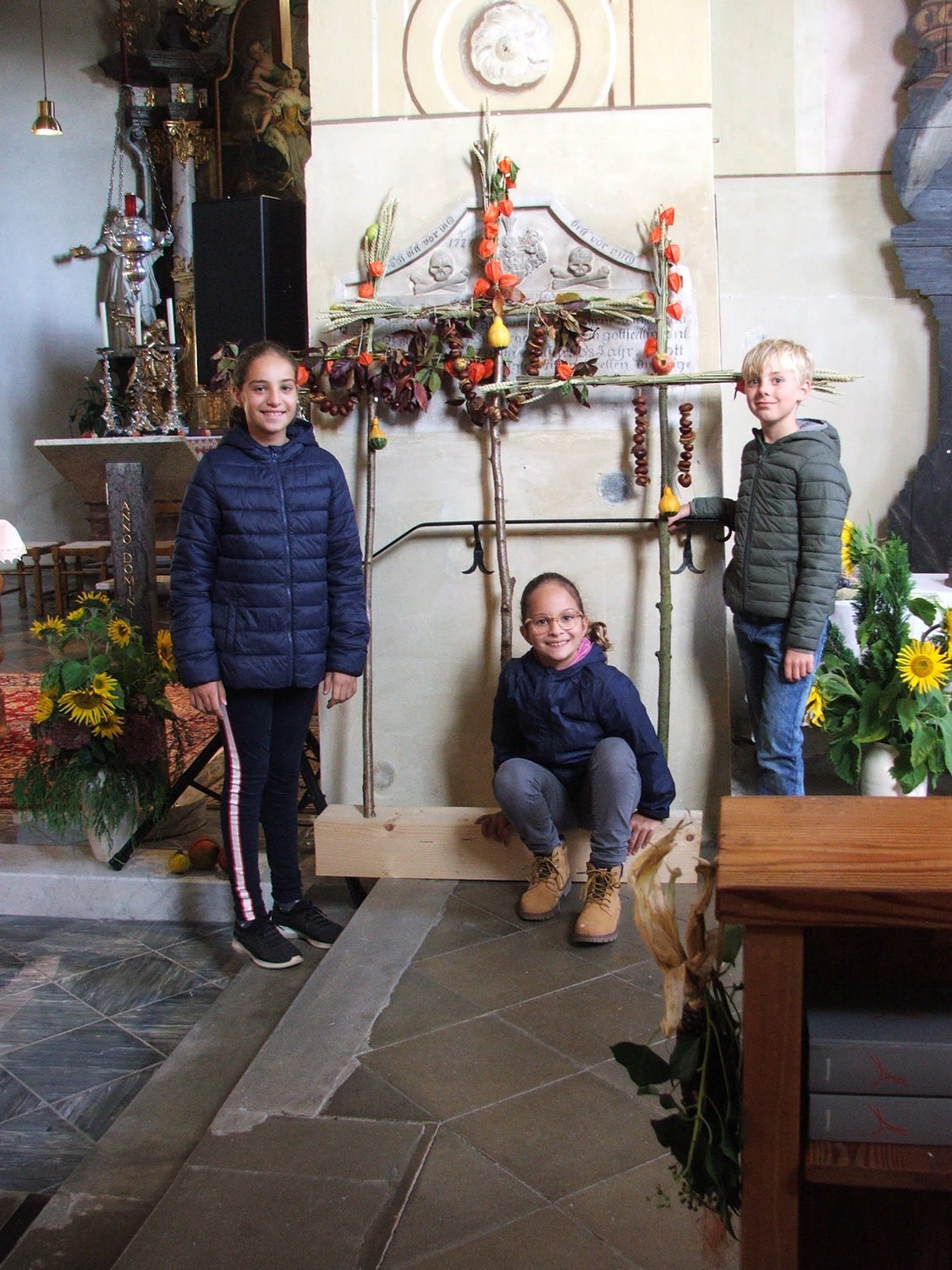 Erwachsene und Kinder waren glücklich vereint, um sich für "die Früchte der Erde und der menschlichen Arbeit" zu bedanken.