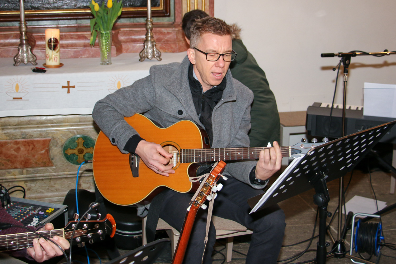 Drei Mütter sprachen bei der Predigt über die Themen aus dem Evangelium (Salz und Licht) und der Taufe. Bei der Taufe stehen drei Symbole im Mittelpunkt: Das Taufwasser, das weiße Kleid und die Taufkerze. Diese Taufkerze brachten die Kinder mit, um sie an der Osterkerze zu entzünden und so an ihre Taufe erinnert zu werden.