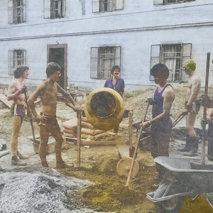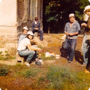 LEISTUNG: Neue Fenster in altem Stil, Heizung für feste Brennstoffe und Öl, Toilettenanlagen, Kläranlage, Elektroinstallation, Ausbau des Jugendkellers, Ausmalen, Türenstreichen, neue Fußböden mit Ausnahme der alten Fliesen, neuer Eingang – dadurch Gewinn eines Raumes.
