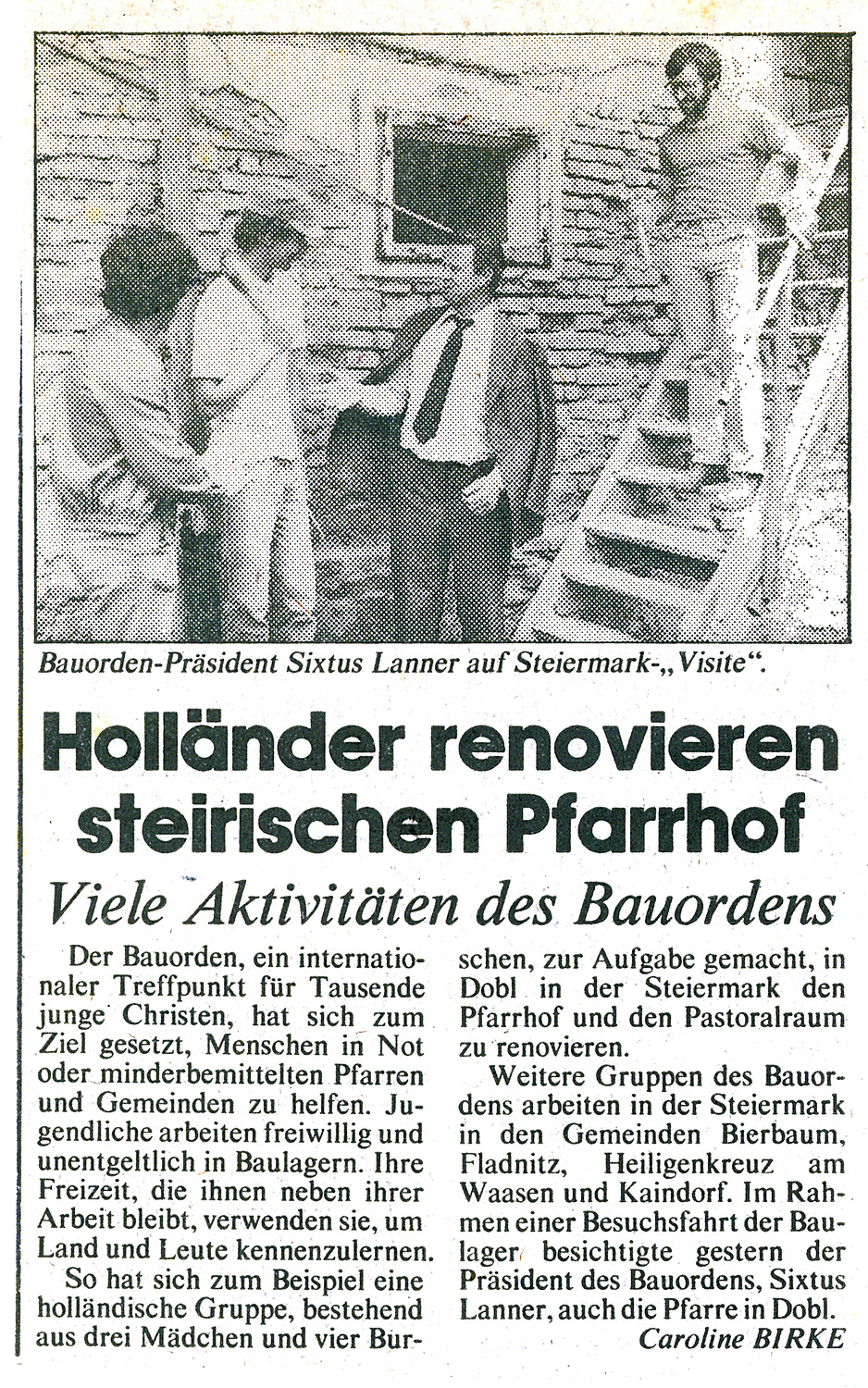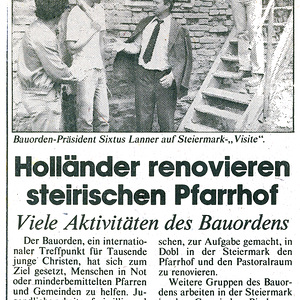 Der Einsatz des holländischen Bauordens war bei diesem Umbau ein besonderes Erlebnis für die Pfarrbevölkerung. Es kann durchaus sein, dass der Dobler Pfarrhof erst durch das Miterleben des selbstlosen Einsatzes der Bauordensgesellen zur Angelegenheit der Bevölkerung wurde. Hieß es nicht vorher, der Pfarrhof sei Sache des Ordinariats?