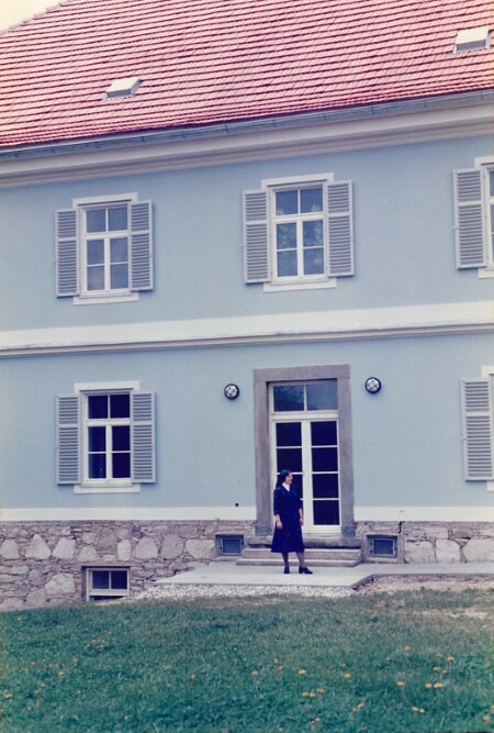 Sr. Elisabeth Gruber vor dem neu renovierten Pfarrhof