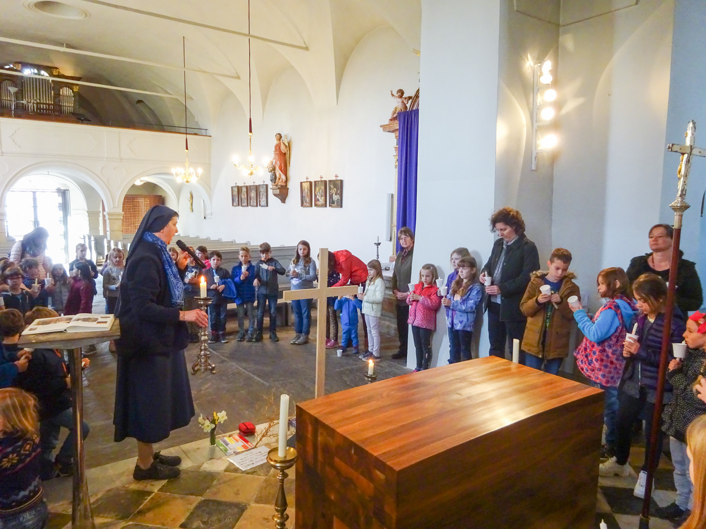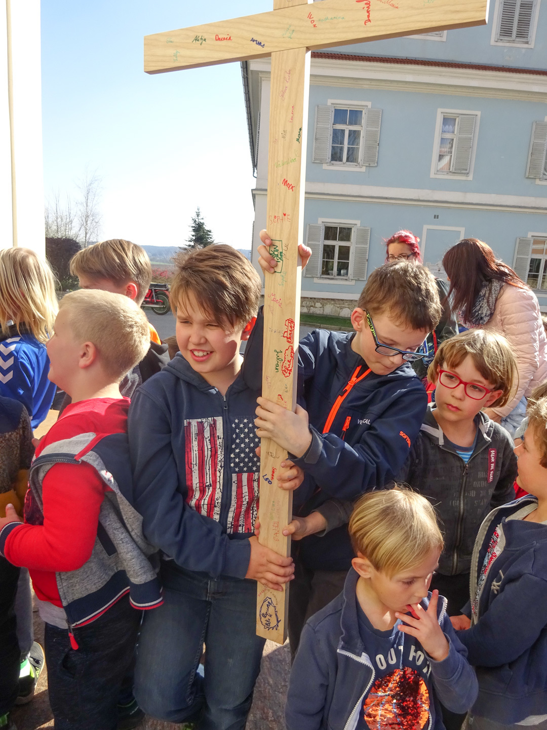 Viele Kinder sind der Einladung gefolgt, haben die 14 Kreuzwegstationen angeschaut und sind betend und singend den letzten und schweren Weg mit Jesus „gegangen“.
