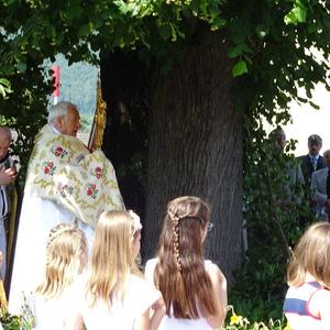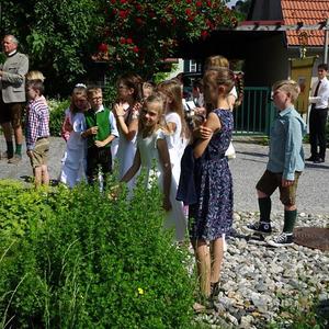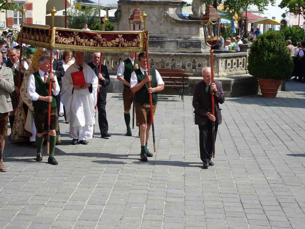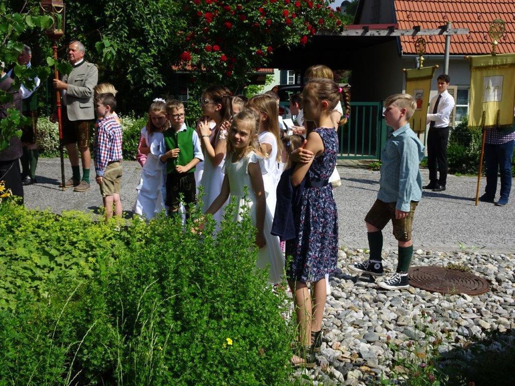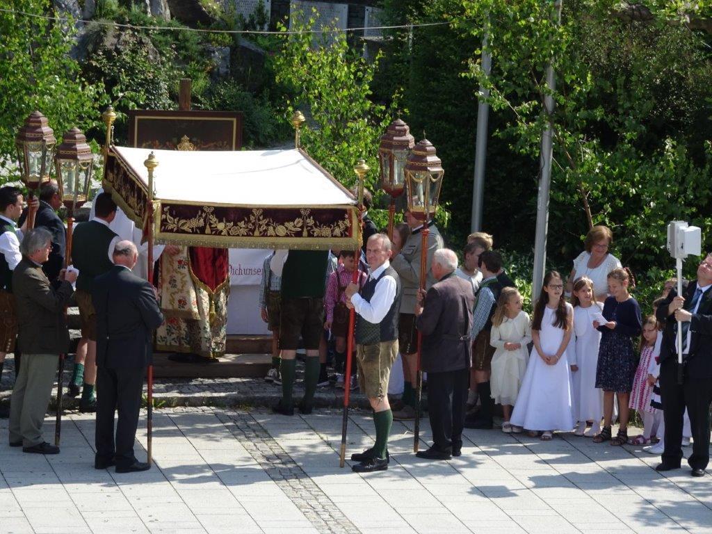Die Prozession, an der einige Erstkommunionkinder und etliche örtliche Vereine, wie Musikverein, Landjugend, Kameradschaftsbund, Oberlandler, Hocholma teilgenommen haben, endete dann mit einen Segen und dem "Großer Gott wir loben Dich" in der Pfarrkirche.