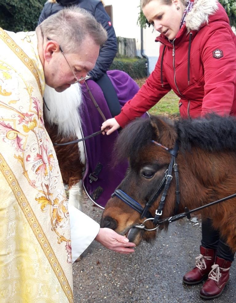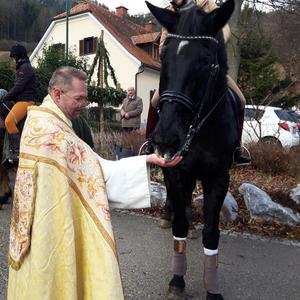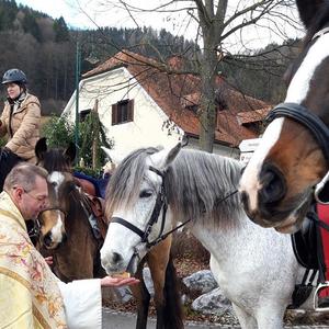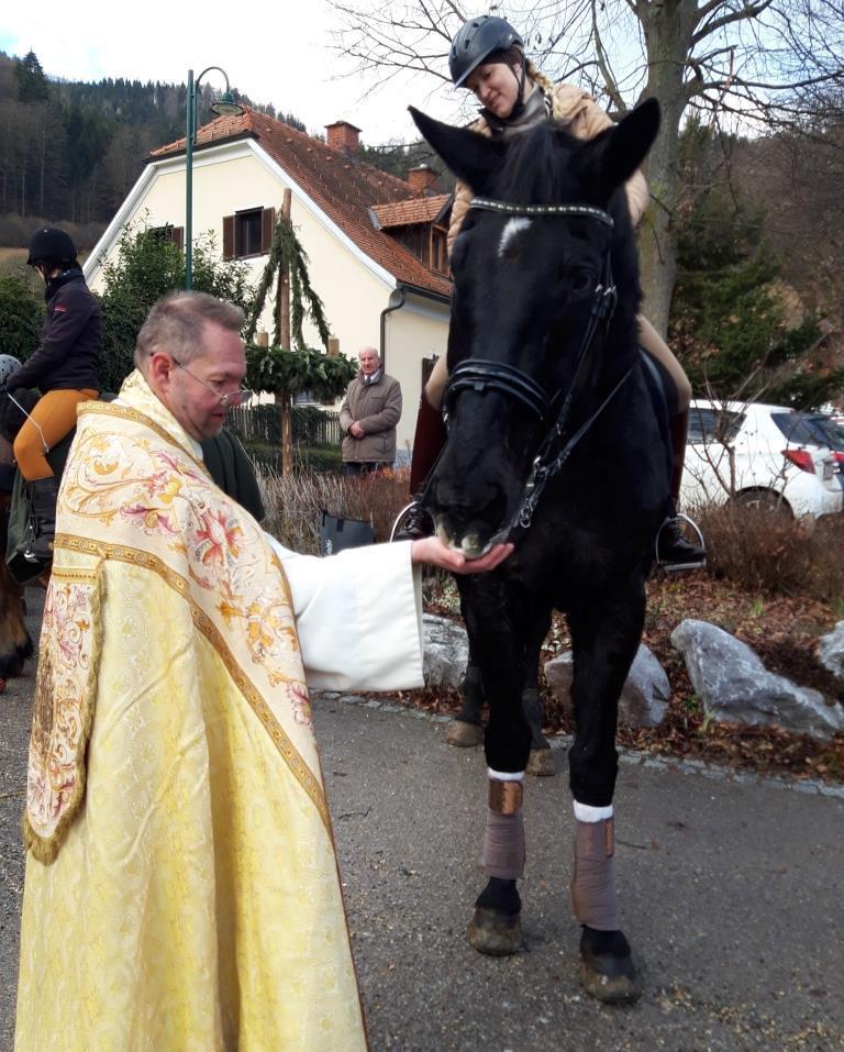 Nach dem Weihnachtsgottesdienst zu Stefani segnete Pfarrer Ruthofer Pferde und Reiter, die sich vor der Adriacher Kirche aufgestellt hatten.