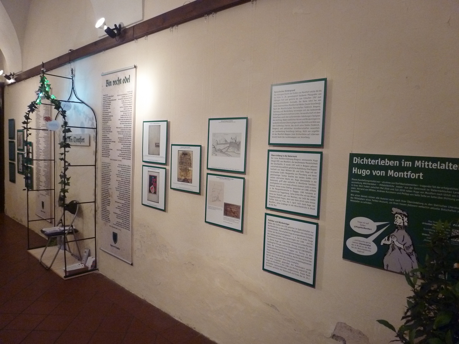 Die Ausstellung wurde vom Universitätsverein Steirische Literaturpfade des Mittelalters gestaltet und bietet die Möglichkeit, mit Literatur und Sprache des steirischen Mittelalters in Berührung zu kommen und in die Lebens- und Vorstellungswelt der Dichterpersönlichkeit einzutauchen.