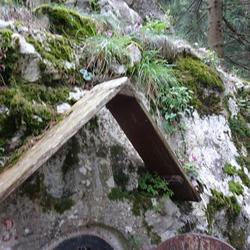 Zum Schutze des Marterls vor Witterungseinflüssen wurde darüber ein einfaches Holzdach am Fels montiert und eine Holztür zum Verschließen angebracht. An deren Innenseite ist auf einer Tafel zu lesen: