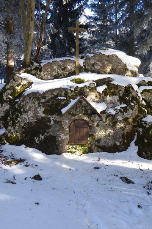 Die Errichtung dieser Andachtsstätte wurde von der Familie Anastasia und Georg Handl, den Vorfahren der Familie Zöhrer, veranlasst. Die Erbauer hatten sich mit ihren Initialen und dem Jahr der Gründung - „19.G.A.H.03“ - auf diesem Felsen verewigt.