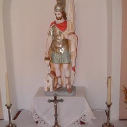 Herzstück der Kapelle ist in der Mitte eine herrliche Statue des heiligen Florian auf einem Altarbrett. Florian, der zu Beginn des 4. Jahrhunderts wegen seines Glaubens in die Enns gestürzt wurde, ist der Schutzheilige von Oberösterreich und der Patron gegen die Feuersgefahr, somit auch der Schutzherr aller Feuerwehren. Flankiert wird seine Statue von einem metallenen Kruzifix, zwei Kerzenständern und zwei gesegneten Palmbüschen. Letztere erinnern daran, dass seit der Auferstehung Jesu das Leben stärker ist als der Tod und die Liebe mehr Kraft hat als das Böse.