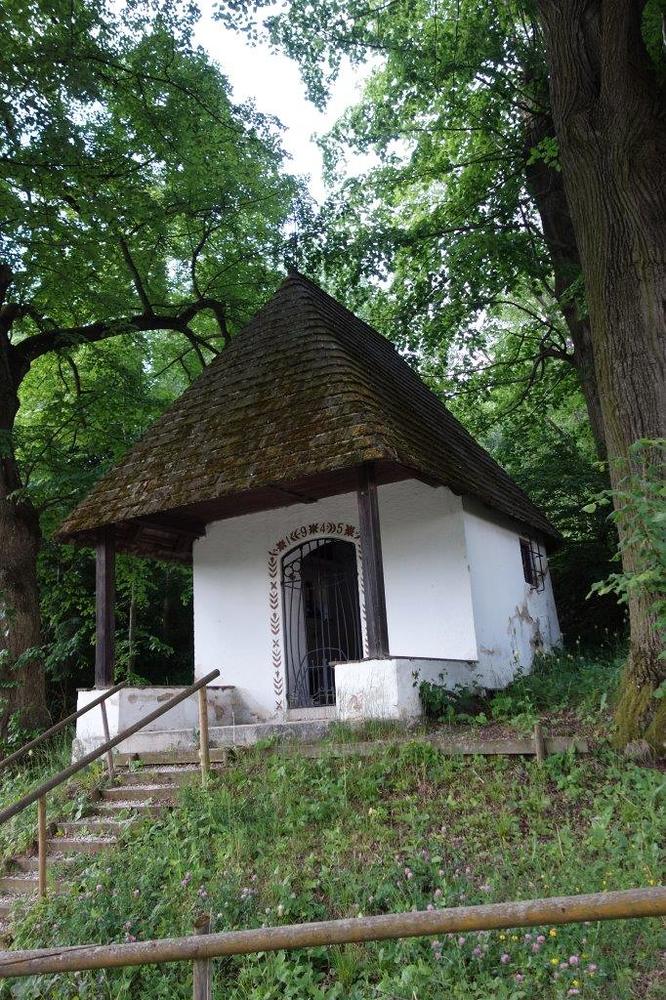 Die Kapelle ist ein stabiler Steinbau, besitzt einen Altar, ein Schindeldach, ein Vordach mit massiven Holzständern, zwei seitliche Mosaikfenster, ein schmiedeeisernes Tor, ein kunstvolles Eisenkreuz am First und als Aufgang einige Naturstufen mit einem Holzgeländer. Die Idee, Planung und Ausführung oblag dem Architekten Ing. Jonen Kostrowa. Die herrlichen Gemälde stammen vom Akademischen Maler Kokol. Die feierliche Einweihung erfolgte am 28. Juli 1946 durch den damaligen Pfarrer P. Angelikus Schwarzenbach. Die Sängerschar des Pfarrchores unter der Leitung von Prof. Ewald Cwienk sorgte für die musikalische Umrahmung. Das erste Messopfer wurde dann am 17. August 1946 gefeiert.
