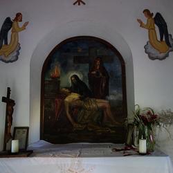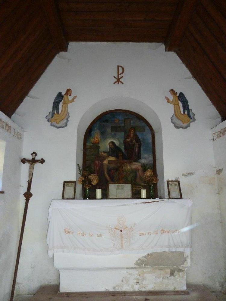 Das Originalgemälde der Mater Dolorosa im Inneren der Schöller-Kapelle wurde nach dem Krieg vom bekannten Akademischen Maler Erich Kokol im Spritzverfahren angefertigt, dessen Eltern im Sommer immer Urlaub am Nachbarnbauernhof machten.