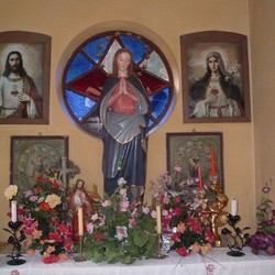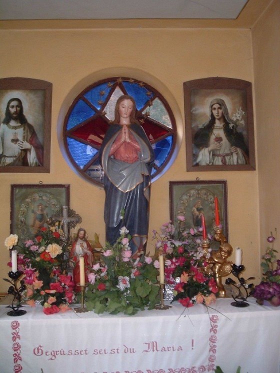 Herzstück dieser Kapelle ist eine wunderschöne Muttergottesstatue aus Gips, flankiert von einigen Jesus- und Marienbildern.