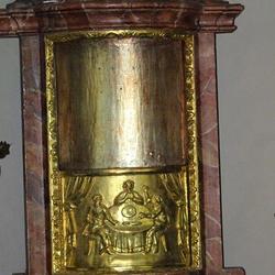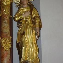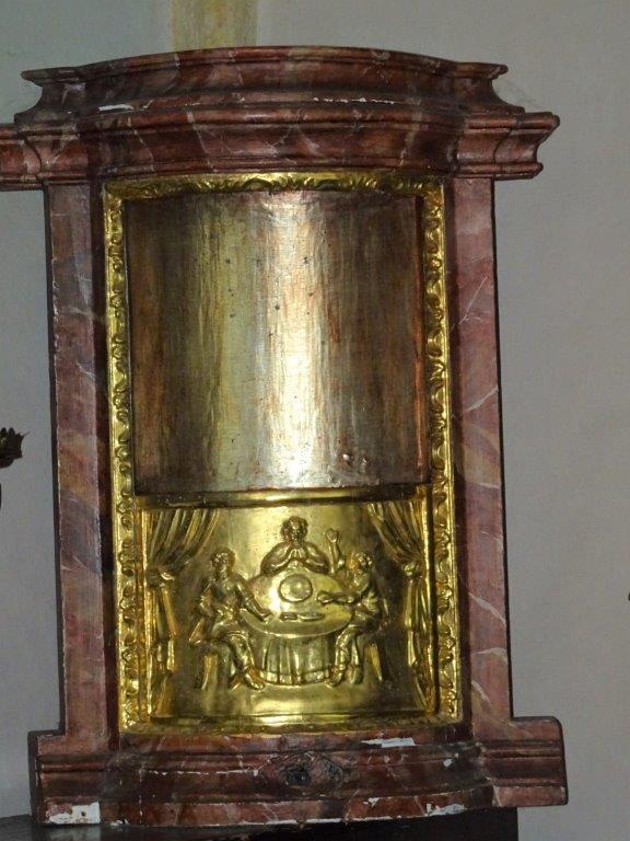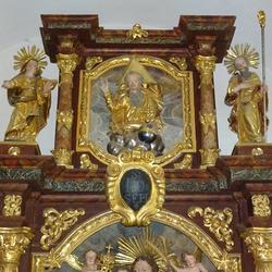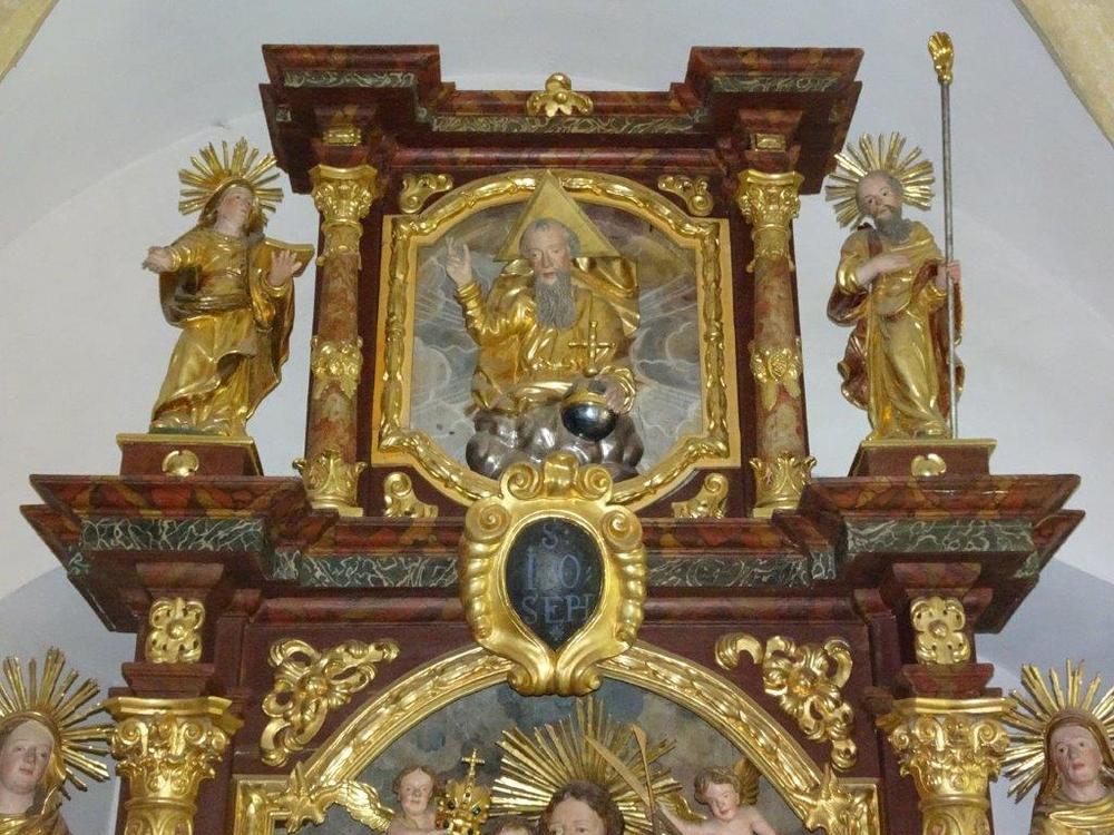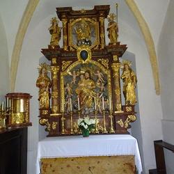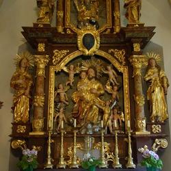 Im Altaraufsatz thront Gottvater in der Mitte, die Statuen der Eltern Marias, die hl. Anna (mit einem Buch in der Hand) und Joachim (mit dem Hirtenstab) befinden sich seitlich am Altar. Ein kunstvoll gestalteter Schrein, ein Tabernakel in der Ecke links daneben, wird heute nicht mehr genutzt.