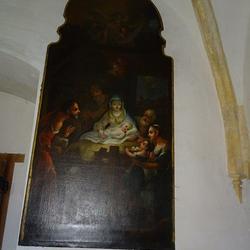 An der gegenüberliegenden Wand hängt ein Gemälde von der Geburt Jesu, das vom berühmten Maler Joseph Adam Mölk stammt.