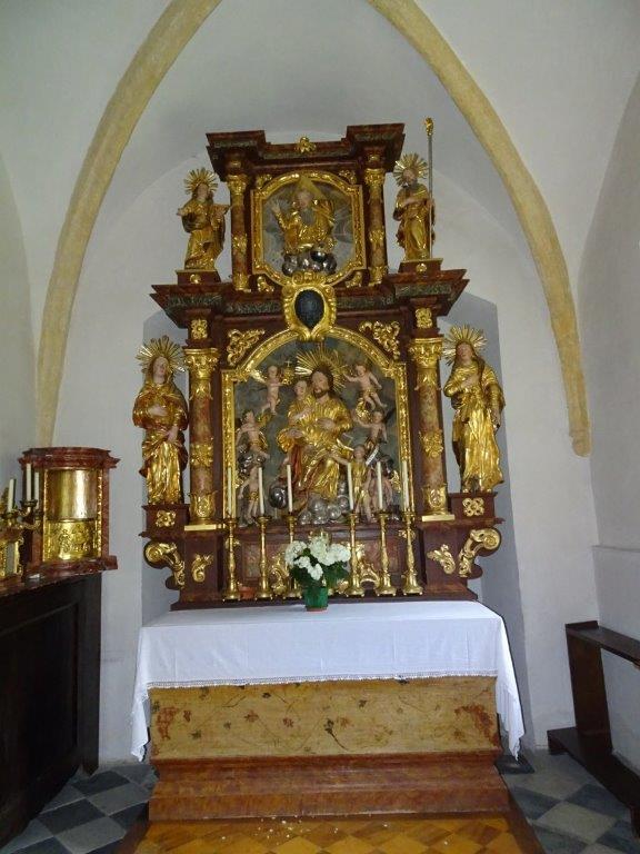 Der Josephsaltar mit strengem, frühbarockem Aufbau aus dem späten 17. Jh. stammt vom Künstler Matthias Kern und stellt die „Heilige Sippe“ dar, die Verwandten Jesu Christi. Diese Darstellung ist in der Steiermark einzigartig!