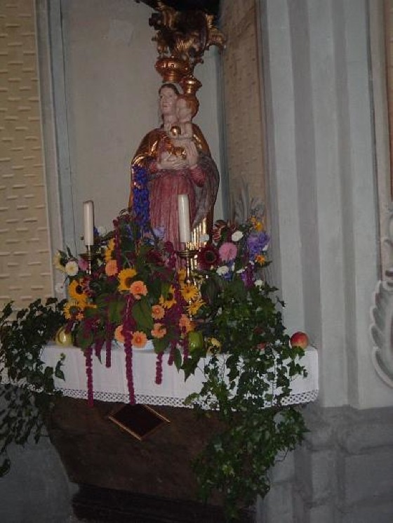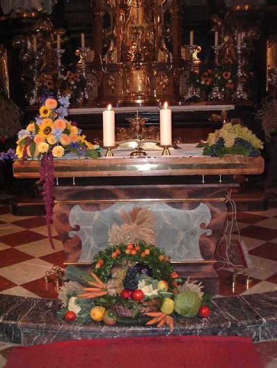 Das Hochaltarbild zeigt die Darstellung der Himmelfahrt Mariens, gemalt von Josef Adam Mölk. Während Maria bereits, von Engeln getragen in den Himmel entschwebt, haben die Apostel, die um das leere Grab versammelt sind, noch nicht vollends das Wunder erfasst - überrascht, zum Teil bestürzt, blicken sie um sich.