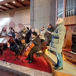 Nach dem musikalisch wunderbar umrahmten Gottesdienst begrüßten die KirchenchorsängerInnen die BesucherInnen "mit an schean G'sang" und luden zu einem gemütlichen Beisammensein im Pfarrsaal ein.