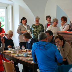 Um 9:00 Uhr wurden wir im Pfarrhof Obdach, der ehemaligen Pfarre unseres Pfarrers Claudiu Budău, mit Kaffee und Kuchen köstlich versorgt.
