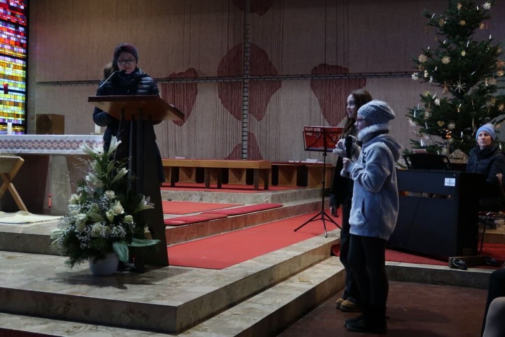 Christina Fegerl hat mit einigen Kindern die Weihnachtsgeschichte für die vielen Besucher der Kinderkrippenfeier erlebbar gemacht.