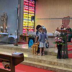 Gesegnet und gestärkt konnten die Gottesdienstbesucher:innen das neue Schul- und Arbeitsjahr beginnen. Alle Kindergarten-, Schultaschen, Unirucksäcke, Laptoptaschen...und Koffer wurden mit ihren Besitzer:innen mit dem Segen Gottes und dem Wissen "Ich bin nicht allein" begleitet. Als Erinnerung daran wurden kleine Segens- und Stärkungssymbole verteilt. Tina Schörgi lud alle ein wieder mehr zu segnen, was jede und jeder darf, und den Mitmenschen Gutes zu wünschen: durch ein Kreuz auf die Stirn beim Gute Nacht sagen, beim Anschneiden eines Laib Brotes, beim Abschied mit Weihwasser.... Alle Kinder erhielten kleine Weihwasserfläschchen und die Erwachsenen die Erinnerung, dass wir "Gott befohlen" sagen, wenn wir "tschüss" sagen, das vom französischen a dieu kommt oder "God be with you" beim Gruß "bye, bye".  Ein gemischter Chor hat die Feier wunderschön musikalisch gestaltet.