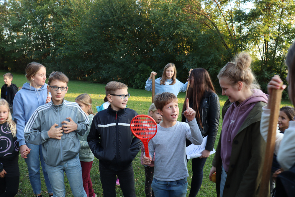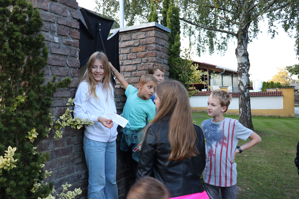 Nach einer kurzen Stärkung ging’s weiter mit einer Schnitzeljagd: Der Eule von Pfarrer Claudiu fehlten einige Sachen, welche unsere Kinder durch einige Aufgaben wieder finden mussten.
