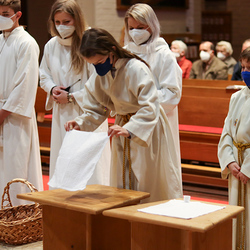 Am Gründonnerstag feierten wir eine gemeinsame Seelsorgeraum-Messe in der Pfarrkirche Lieboch. Mit dabei waren drei Priester, drei Diakone, drei Pastoralreferentinnen, über 20 Ministranten und verschiedene weitere Dienste aus unseren sechs Pfarren.