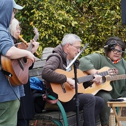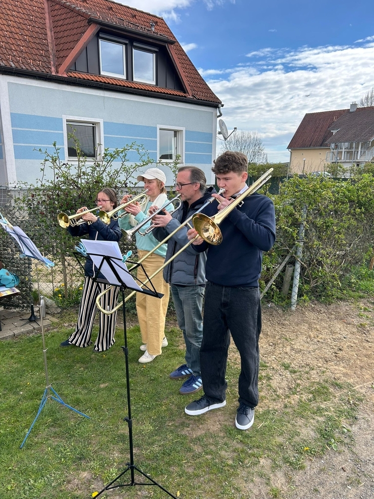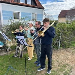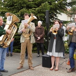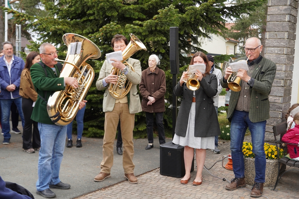Musikalisch gestaltete eine Abordnung der MUZ von der Empore aus die heilige Messe - und auch danach beim Totengedenken mit Kranzniederlegung vor dem Kriegerdenkmal waren die Musiker*innen zur Stelle.