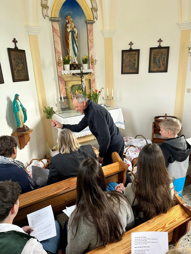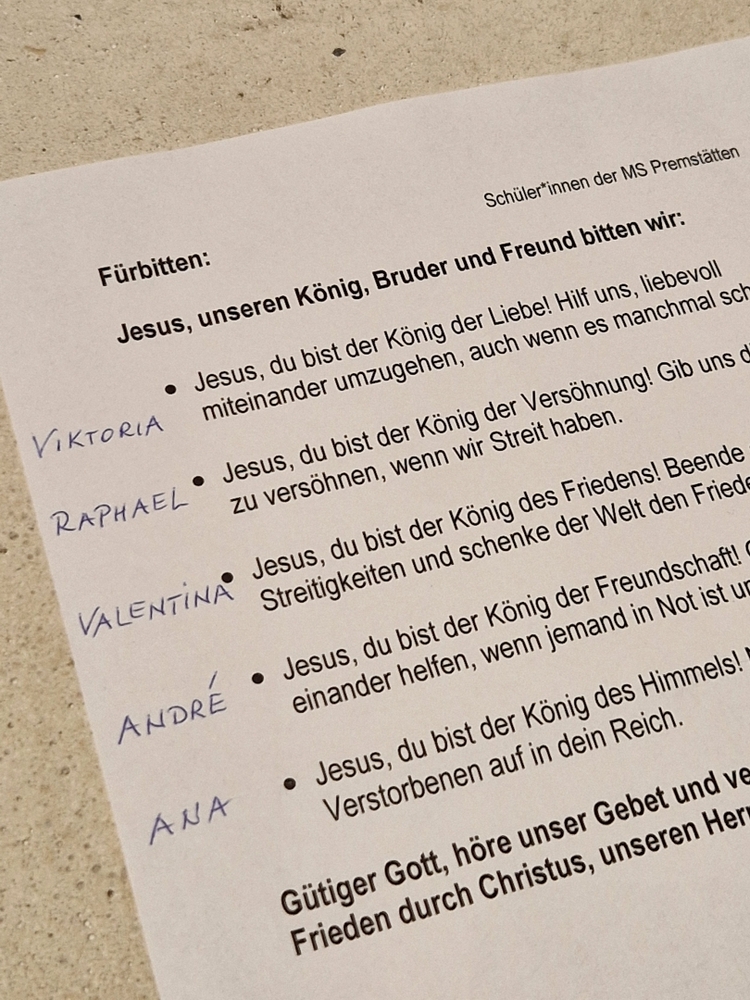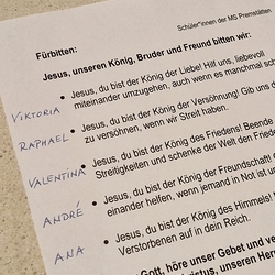 Gute Gedanken der MS-Schüler*innen regten beim Kyrie zum Nachdenken an – ein leerer Korb, der „Gott, sei Dank“ nicht leer bleibt! Ihre Fürbitten kamen aus eigener Feder und von Herzen.