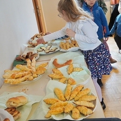 Am 31. Oktober fanden sich auch heuer wieder viele große und kleine Bäckerinnen und Bäcker im Pfarrheim ein, um aus 12 kg Germteig herrliche Allerheiligenstriezerl zu formen. Sieben Erwachsene sowie alle Minis und eventuell zukünftige Minis (insgesamt 16 Kinder) waren von 9 -11 Uhr mit Feuereifer dabei.