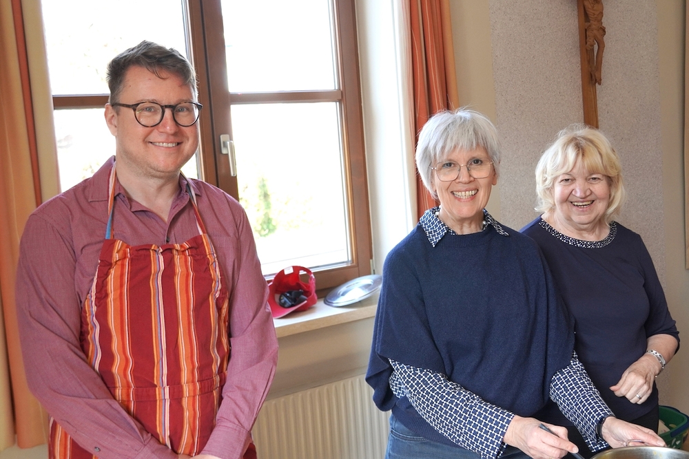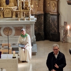Gedanklich führte uns Vikar Norbert auf die Spur, was der Vers „Seid also wachsam!“ aus dem Evangelium (Mt 24, 42) für uns heute heißen kann - und wie die Vision des Jesaja, dass Schwerter zu Pflugscharen und Lanzen zu Winzermessern umgeschmiedet werden (Jes 2, 4), in unserer Welt ein Stück weit Wirklichkeit werden könnte. Es kann nur gelingen, wenn „Menschen ihr Lebensnavi in Jesus verankern“, so Vikar N. Glaser in seiner Predigt.