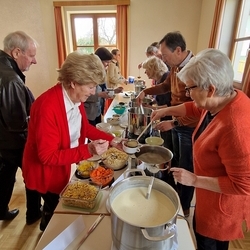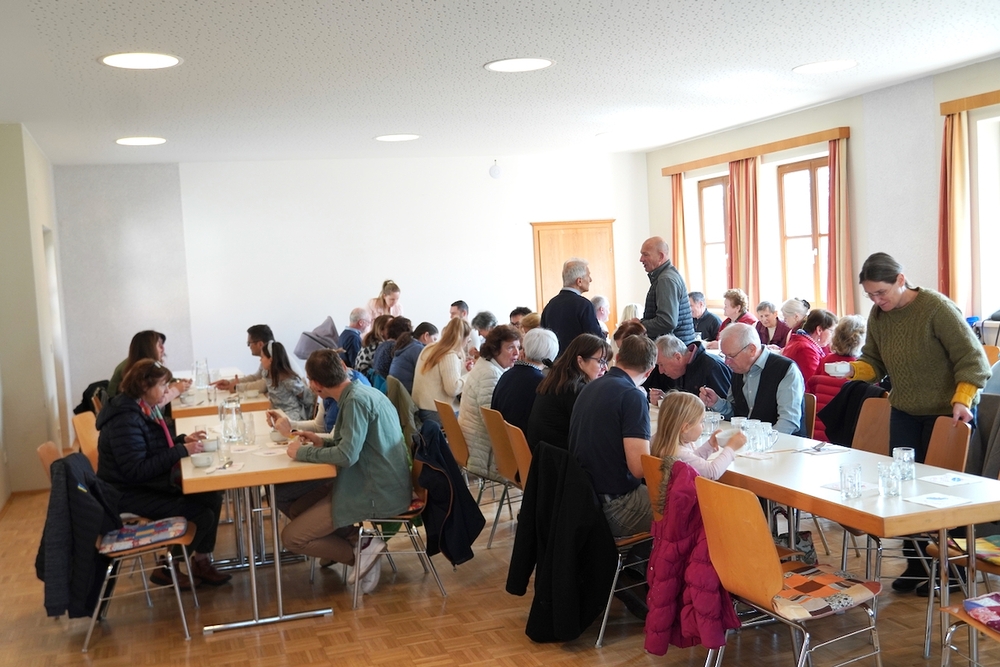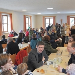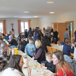 Zum anschließenden Pfarrkaffee lud der Kirchenchor herzlich ein und freute sich über viele Gäste, die das Zusammensitzen bei Kuchen und Kaffee/Tee in netter Gemeinschaft - auch mit Diakon Johannes und seiner Familie - sehr genossen. Ein netter Ausklang eines besonderen Vormittags!