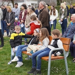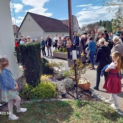 Die Rollenverteilung war ausgewogen. Von den Jägern der Jagdgesellschaften kamen die Grußworte, die gesprochenen Teile der Messe und die Einladung zum Zusammensein mit einer kräftigenden Bewirtung nach der Feier. Der Bürgermeister der Gemeinde Premstätten erzählte von den Leistungen anlässlich der Renovierung und von der Geschichte des Jägerkreuzes, und schließlich segnete in seinem Beisein Pfarrer Claudiu Budău den neu gestalteten Bildstock. Der Pfarrer führte dann durch den Ruf der Jagdhornbläser in die Geheimnisse des Waldes ein und sprach sehr lobend und begeistert in seiner Predigt über das Engagement der Jäger. Der Steirische Jägerchor gab mit der Neuberger Jagdmesse der Feier musikalischen Glanz.