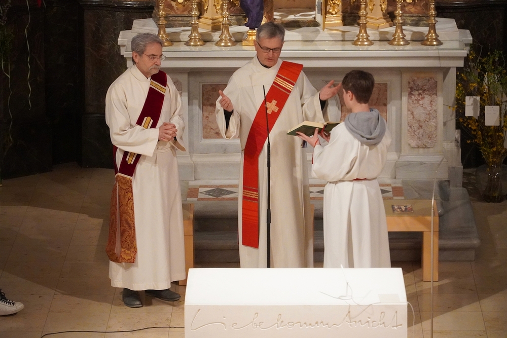 Nach dem feierlichen Einzug betonte Vikar Norbert in der Begrüßung, wie schön es ist, dass Johannes neben vielen anderen ehrenamtlichen Tätigkeiten (Kantor, Organist …) nun auch den Dienst des Diakons ausüben wird.