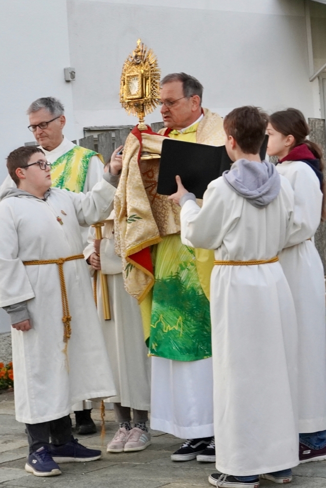 Voll Dankbarkeit und Freude feierten wir das diesjährige Erntedankfest in unserer mit großen und kleinen Leuten gut gefüllten Kirche. Vikar Norbert Glaser zelebrierte die heilige Messe, assistiert von Diakon Michi Zepf und sieben tüchtigen Minis.