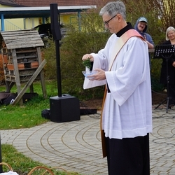 Bei strahlendem Herbstwetter segneten Diakon Franz Habith und Wort-Gottes-Feier- Leiterin Christa Habith die Gräber auf unserem Friedhof.
