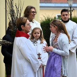 Palmweihe mit Vikar Gerhard Hatzmann am Kirchplatz