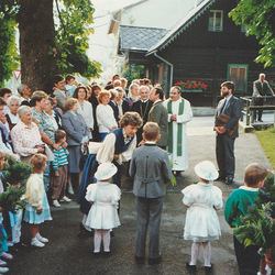 Pfarrer in Unterlaussa von 1989-2005; die Bilder zeigen, wie die Unterlaussinger ihren neuen Pfarrer begrüßen; der damalige Admonter Abt Benedikt Schlömicher war auch dabei.